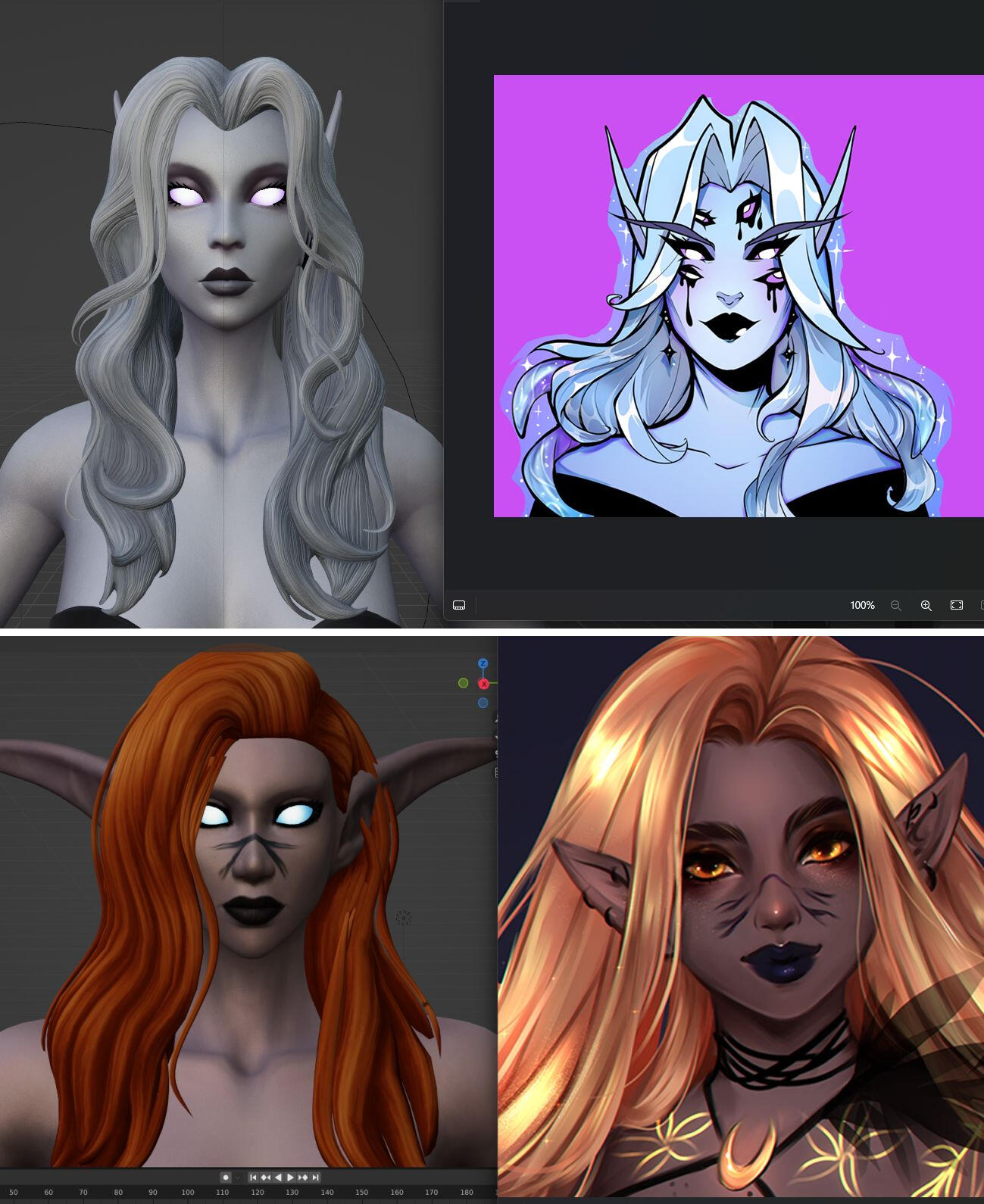 Customized character & custom environment with multiple versions=> This was the first art I made for Eluvianna for Christmas 2023.