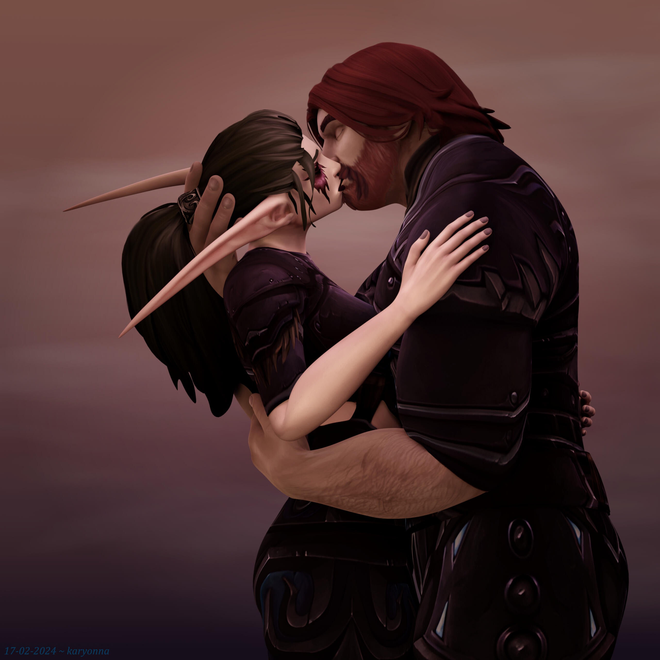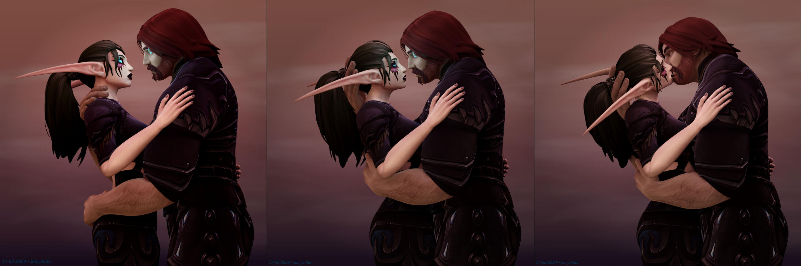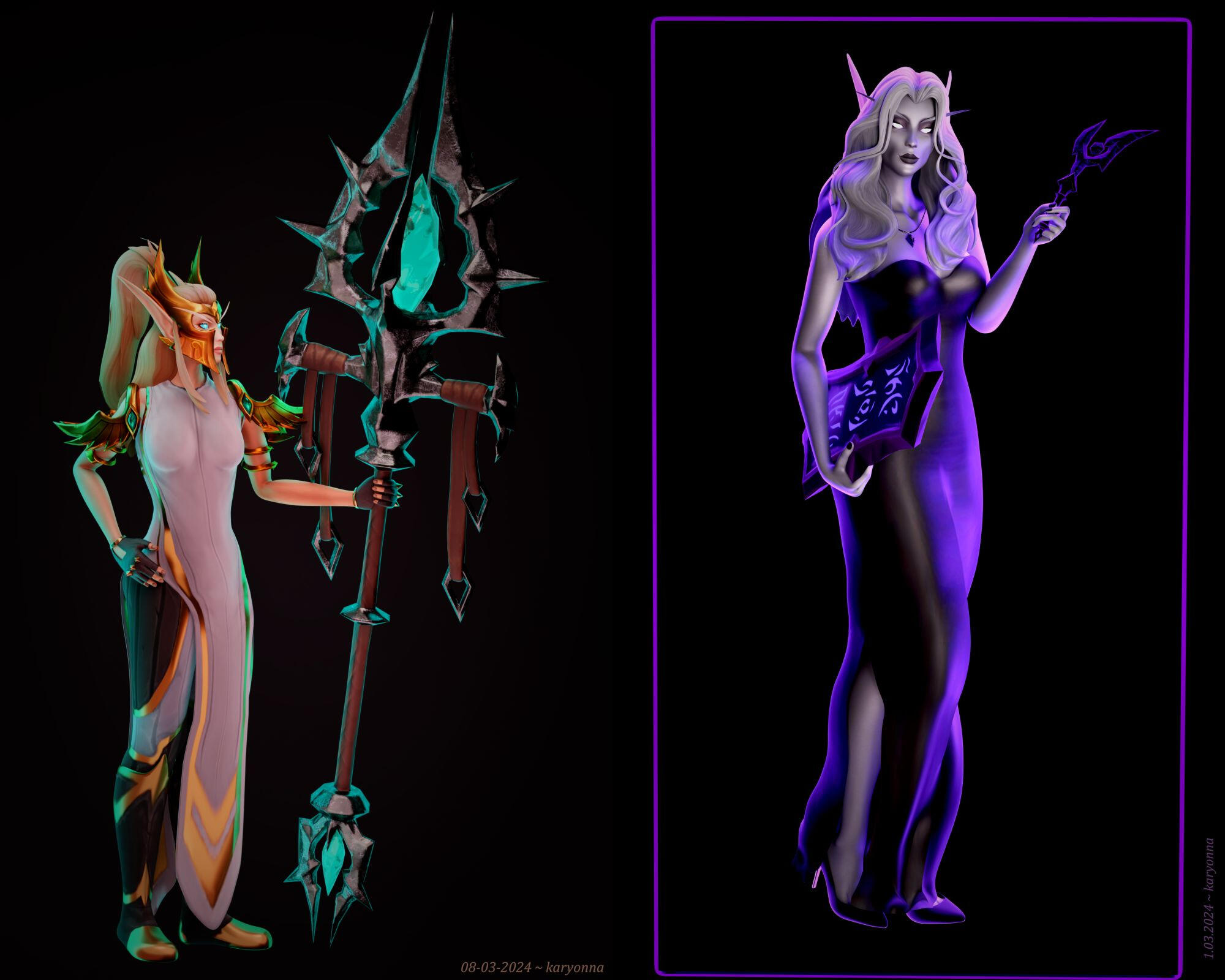 My OC Aryennya in a simple background pin-up pose and in a customized background with Darion Mograine respectively.