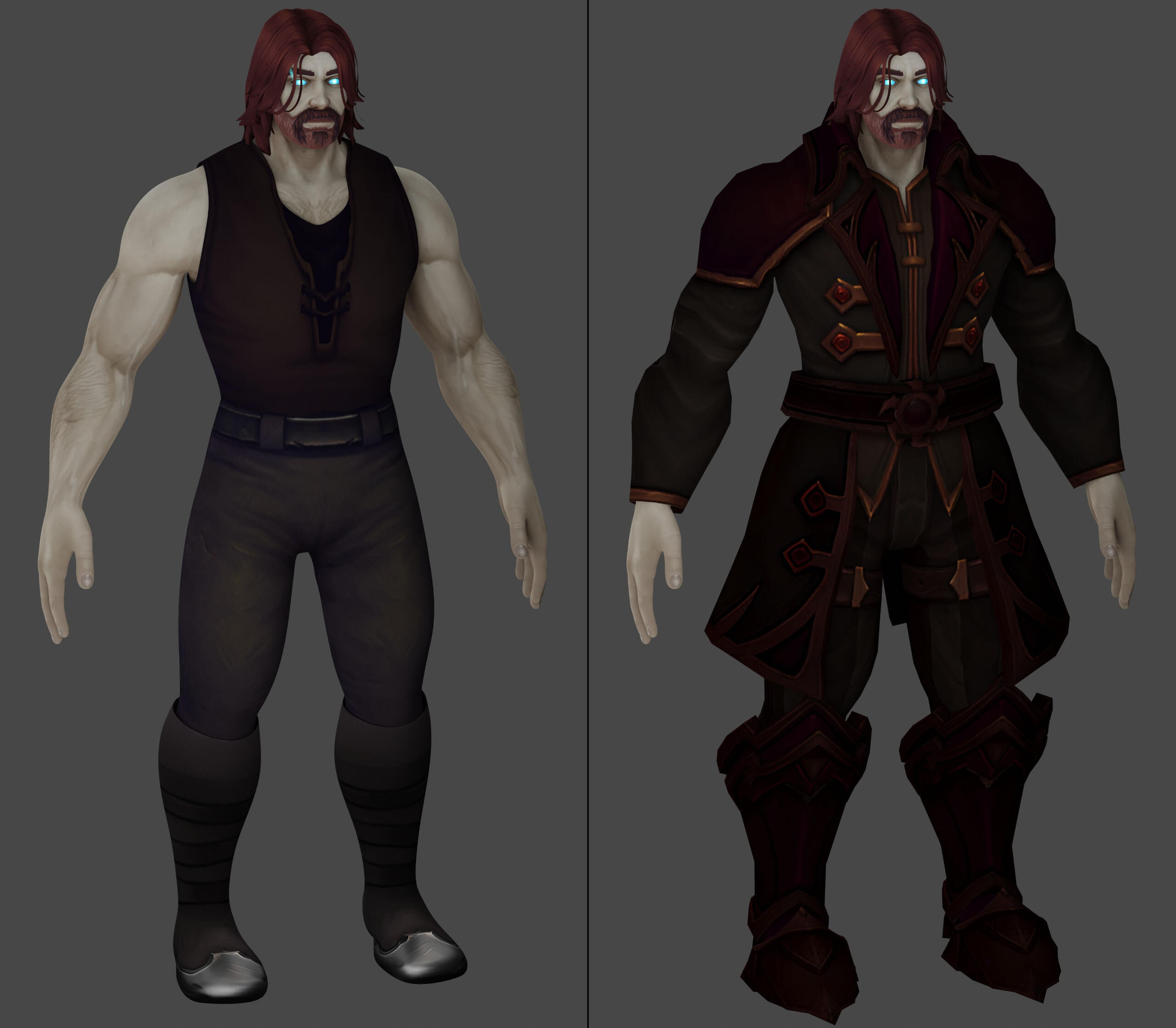 The character look is built on the WoW base and the top is slightly customized to match the clothing envisaged in the character refs provided.