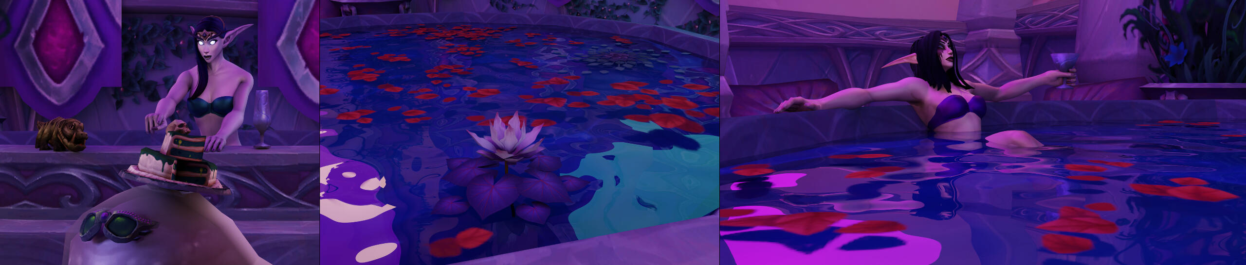 I cannot yet talk about this custom environment a lot as it is a commission wip but the intention behind it is a magical Suramar-style lake for a romantic boat tour through the lush trees.